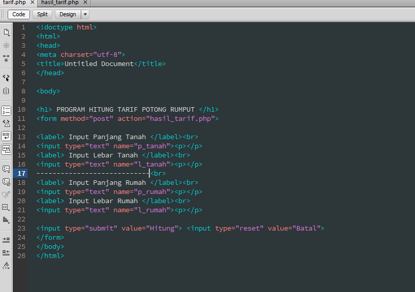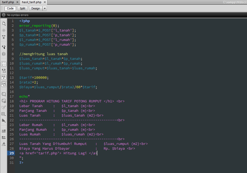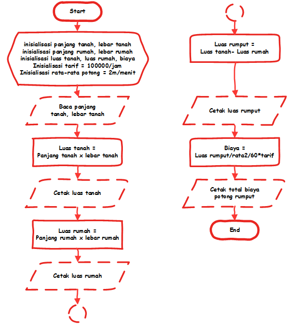 7. Biaya = luas rumput / rata-rata/60*tarif
